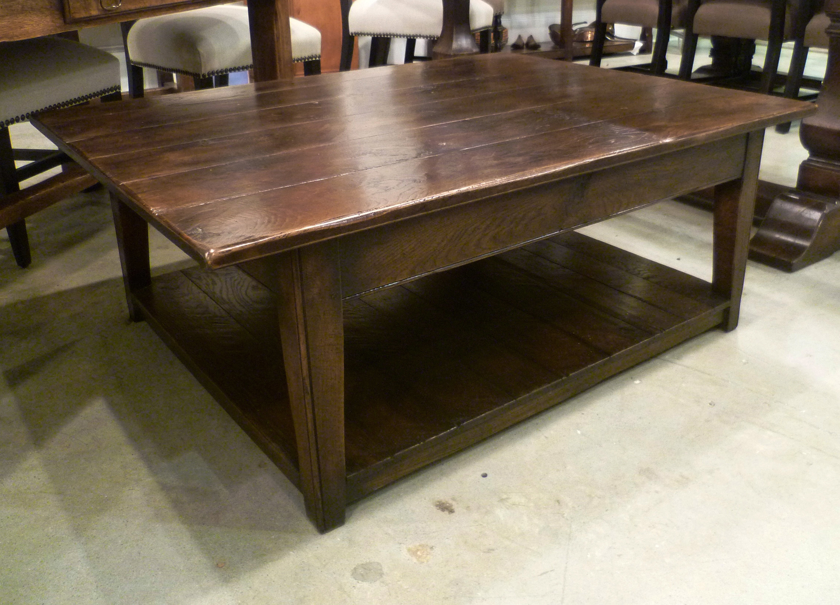 Antique oak finish, cross banded 5' X 3' potboard coffee table. Also available in: 4' X 3', 4' X 4' & 3' X 3'